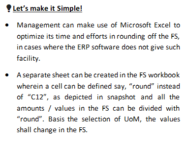 · Amounts reported in the audit report must also be rounded off using the same UoM as applied for preparation and presentation of the FS.