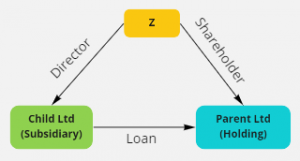 Child Ltd (subsidiary Co.) grants loan to Parent Ltd. (Holding Co.) Z is Director of Child Ltd and shareholder of Parent Ltd.
