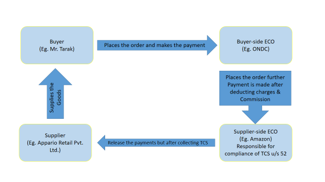 Tax Collected at Source (TCS) provides for mechanism, wherein the e-commerce operator is required to collect a specified percentage of payment to e-commerce supplier, when the supplier make supply of specified goods or service using its portal. The said amount of TCS collected must be remitted to government within 10th of next month, from the month in which the invoice is generated.