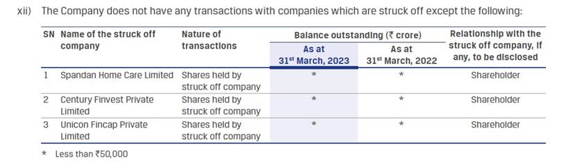 Where the company has any transactions with companies struck off under section 248 of the Companies Act, 2013 or section 560 of Companies Act, 1956, the Company shall disclose the details of transactions and Balance outstanding with those Companies.