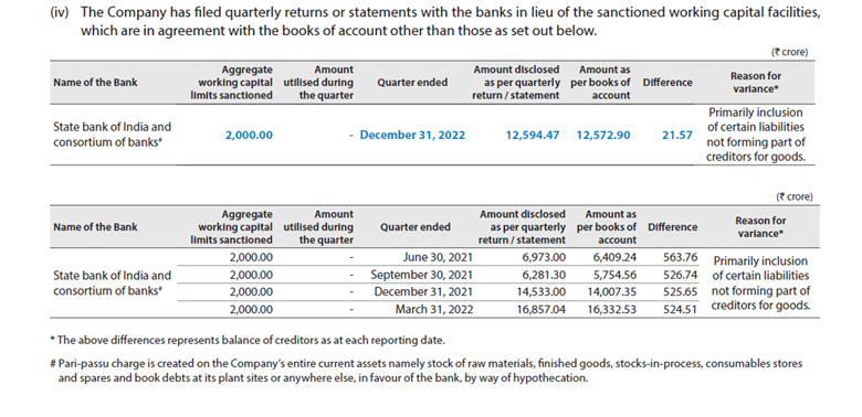 Where the company has borrowings from banks or financial institutions on the basis of security of current assets, it shall disclose the following: