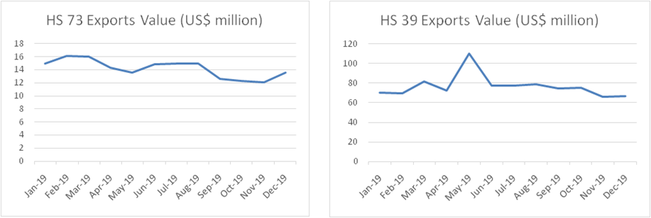 (The unnatural spike seen in May 2019 in HS 39 is because of re-classification of certain items to this HS code.)